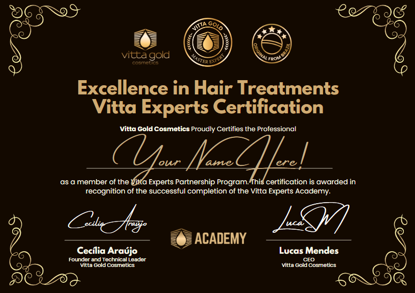 Elevante your professional hair business with Vitta Experts Academy- a complete online course with international certification. Master hair straightening and bleaching, join our global community and access lifetime special prices.